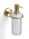 Elegant and hygienic, this wall-mounted soap dispenser features a frosted glass bottle cradled in a brushed brass holder. Crafted from brass, zamac, and glass, it includes a smooth pump mechanism and concealed fixings for a clean, architectural finish. Ideal for basin-side installations in luxury bathrooms.