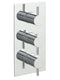 The JTP Florence Vertical Thermostatic Concealed 2 Outlet Shower Valve in Chrome (15690A) delivers minimalist styling and safe, intuitive water control for spa-style wetrooms and contemporary en-suites. With its vertical orientation, three-handle layout, and polished finish, this concealed valve offers radiant clarity and refined utility across two outlets.